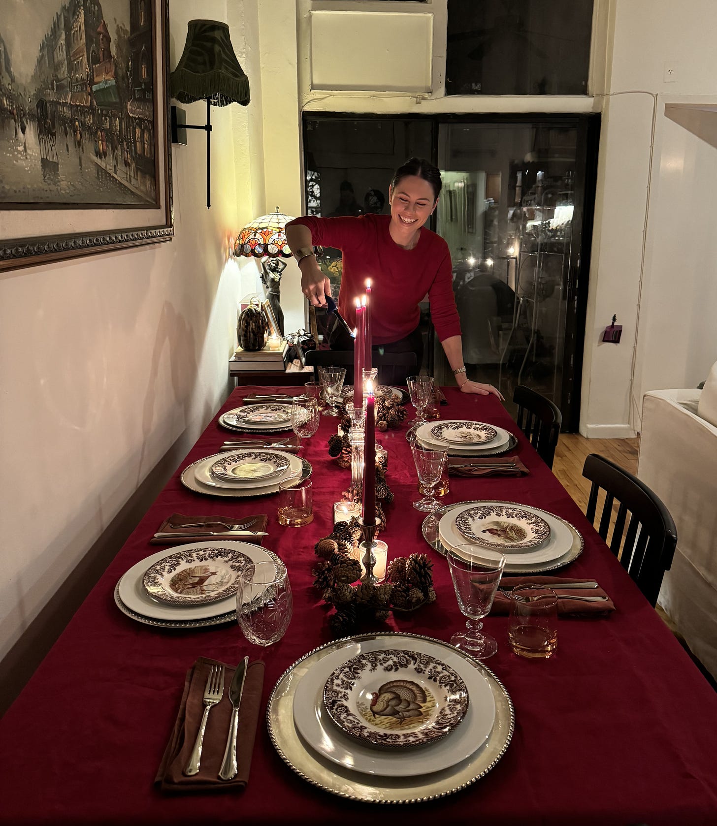 Something I’ve said a million times but it bears repeating: the more you host the easier it gets. We didn’t need to buy a single thing except to re-up on taper candles and tea lights, and our table might be one of my favorites yet. Of course I have a wishlist of things I’d like to add to my collection in the future (we only have two Waterford Lismore wine goblets, I’d love to one day have enough to set the table with!), and I am actually borrowing martini glasses from my mom. But on the whole, we are so prepared. This is something I’m weirdly proud of.