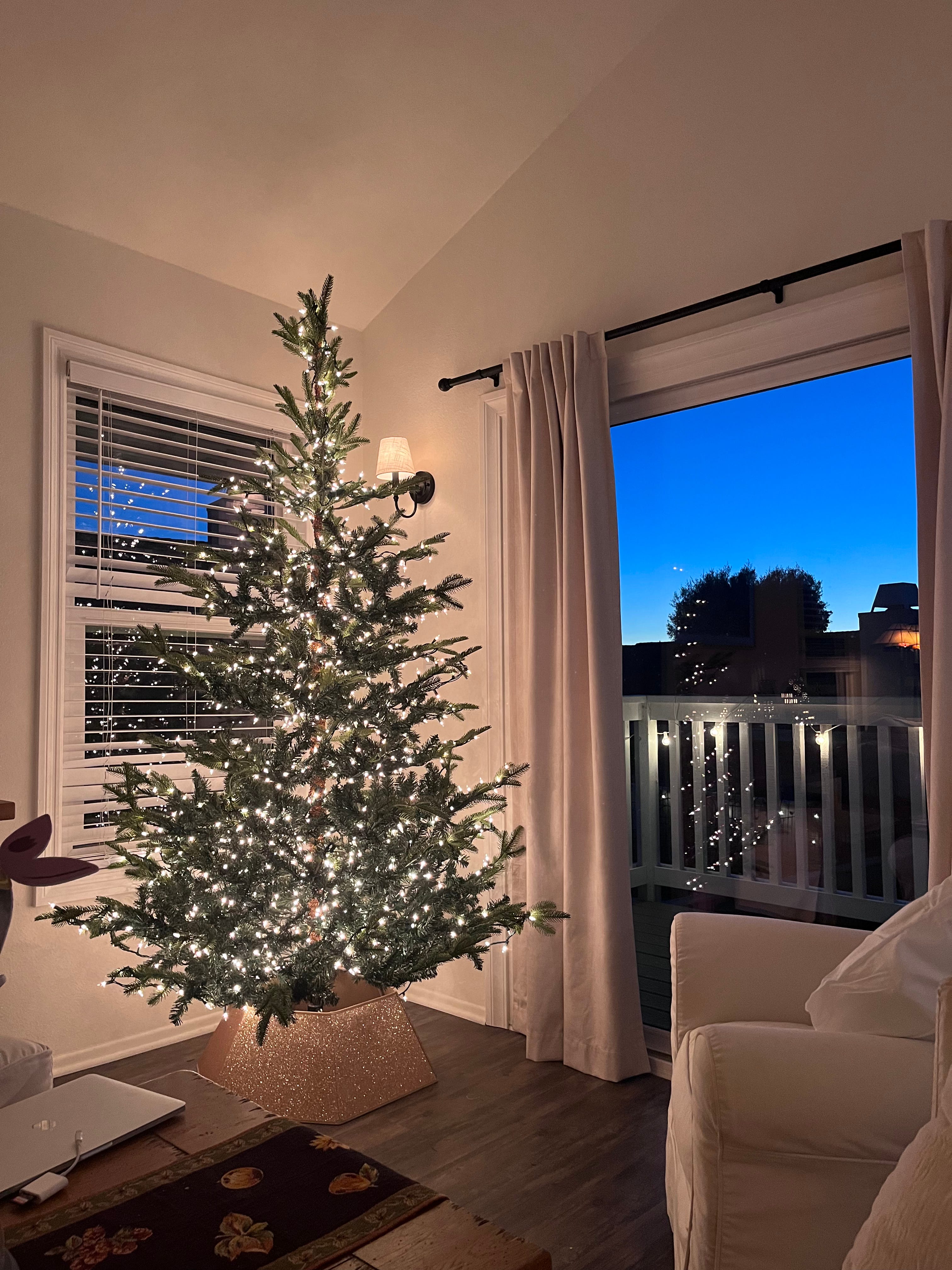 I did something new for me and set up our tree with just the lights on it for Thanksgiving. Usually I am very strict about holding off on anything Christmas until after Turkey Day, but I have to say I’m loving the energy of this sparkly plain tree and my garlands. It’s giving wintery forest magic, not ho ho ho.